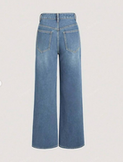 Dames spijkerbroek met wijde pijpen en asymmetrische tailleband