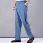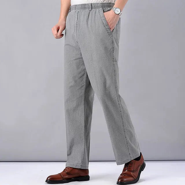 Heren broek met rechte pijpen en een elastische tailleband. De broek heeft een losvallend silhouet en steekzakken aan beide zijden. Gemaakt van katoen, met een rechte afwerking aan de onderkant. Zonder zichtbare sluiting aan de voorkant.