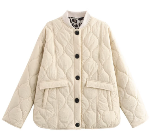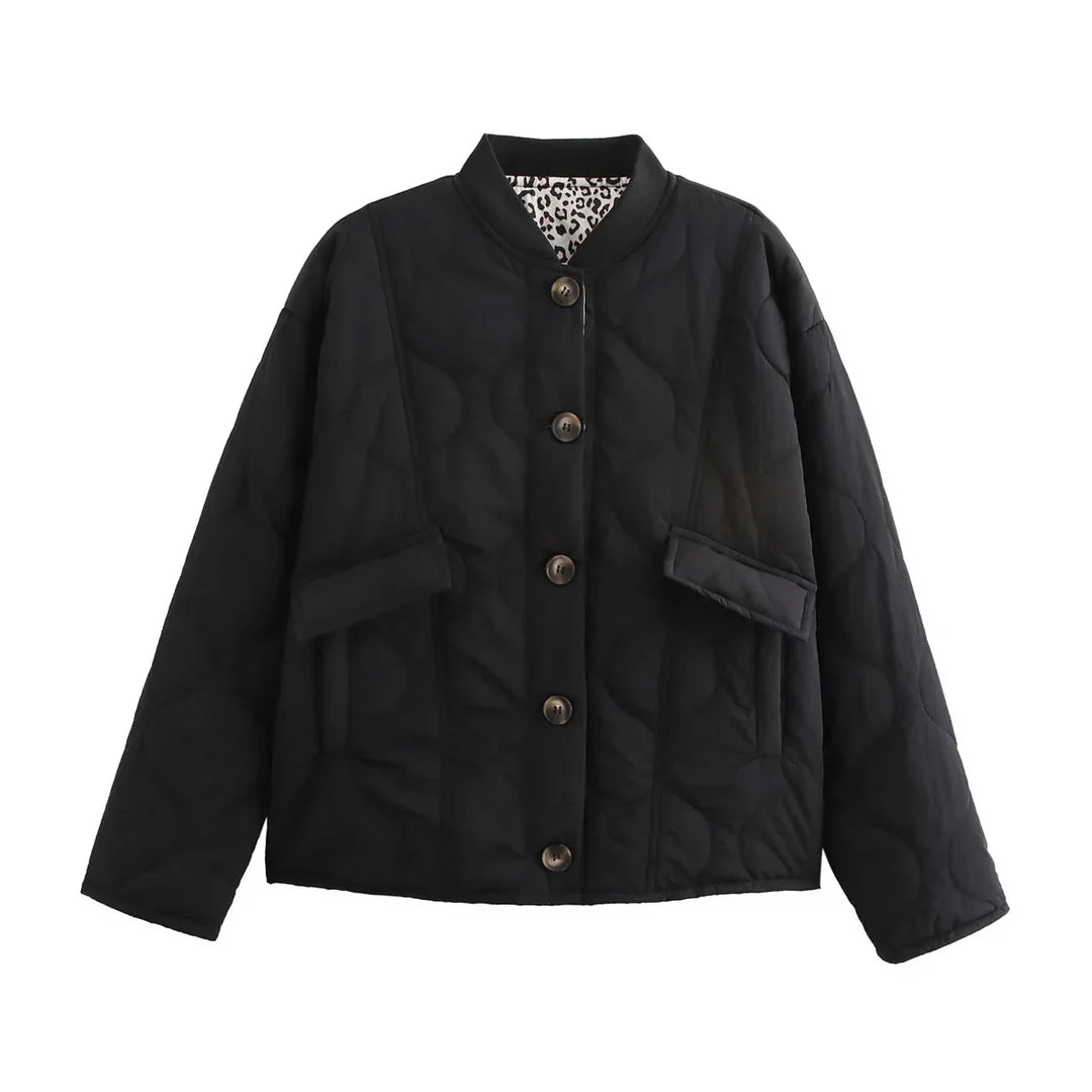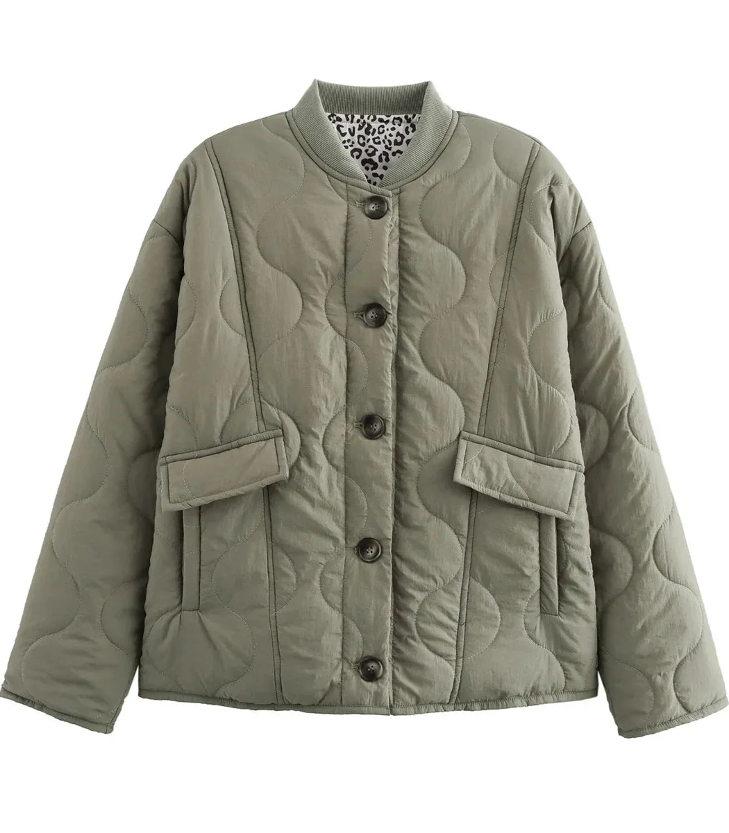 Dames herfstjas met gewatteerd patroon en panterprint voering