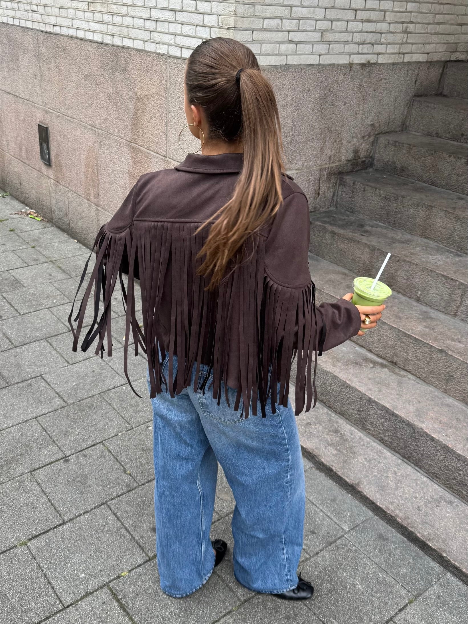 Suède jas met franjes voor dames