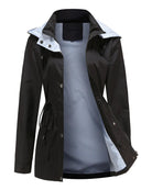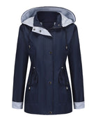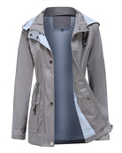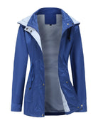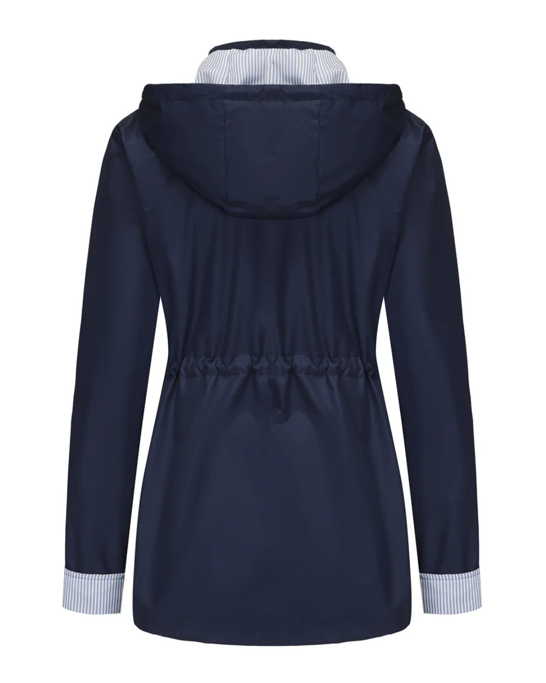 Dames windjack met lange mouwen en verstelbare capuchon. Voorzien van een volledige ritssluiting. Het jack heeft twee zakken met klepsluiting aan de voorkant. De binnenzijde is gevoerd met een gestreepte voering.