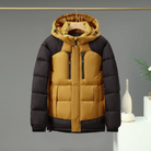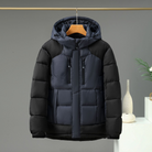 Heren winterjas met lange mouwen en gewatteerd patroon. Voorzien van een capuchon met trekkoord. De winterjas heeft een ritssluiting met extra drukknopen. De onderkant en mouwen zijn afgewerkt met een rechte zoom.