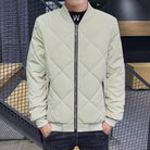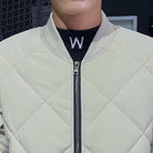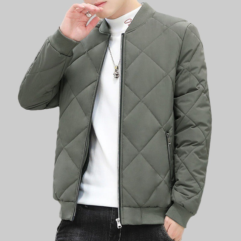 Heren bomberjack met lange mouwen en een rechte pasvorm. Voorzien van een ritssluiting aan de voorzijde en een ronde kraag. Het jack heeft een zichtbaar ruitgestikt patroon aan de buitenkant. Afgewerkt met geribde boorden bij de mouwen en onderzijde.