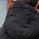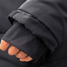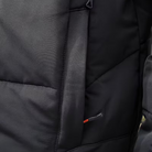 Heren jas met gewatteerde voering en lange mouwen. Uitgevoerd met een ritssluiting aan de voorzijde en een afneembare capuchon met trekkoorden. De jas heeft meerdere zakken met ritsen aan de voorzijde en op de mouwen.