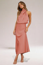 Dames maxi-jurk van katoen met watervalhals en mouwloos ontwerp