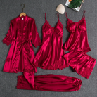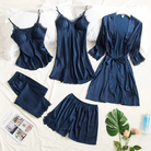 - Vijfdelige set bestaat uit een kamerjas, top, nachthemd, korte broek en lange broek.