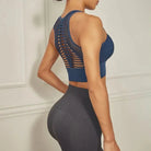 Deze sport bh voor dames heeft geperforeerde details. De voorzijde is voorzien van een ronde halslijn en brede schouderbanden. De bh heeft een elastische band onder de borst. Het rugpand met opengewerkt patroon zorgt voor luchtcirculatie tijdens het dragen.