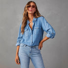 Dames spijker overhemd met borstzakken