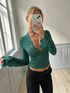 Dames kanten blouse met lange mouwen en diepe V-hals