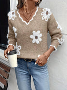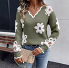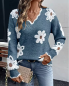 Dames trui met V-hals en bloemenpatroon