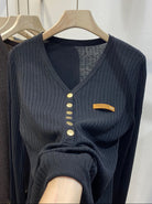 Dames trui met lange mouwen en een V-hals. Voorzien van een halflange knoopsluiting. De trui heeft een ribgebreide structuur over het hele oppervlak. De mouwen en onderrand zijn netjes afgewerkt.