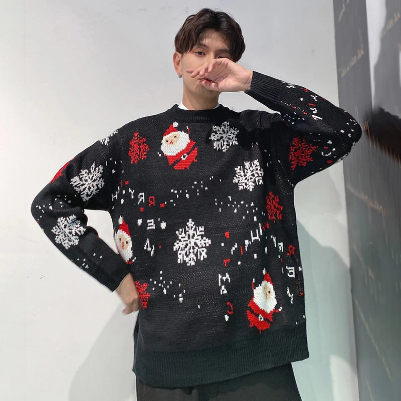 Unisex kersttrui met ronde hals en lange mouwen. De trui is bedrukt met sneeuwvlokken en een kerstman motief. Voorzien van geribde manchetten en zoom.