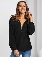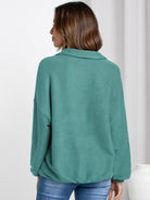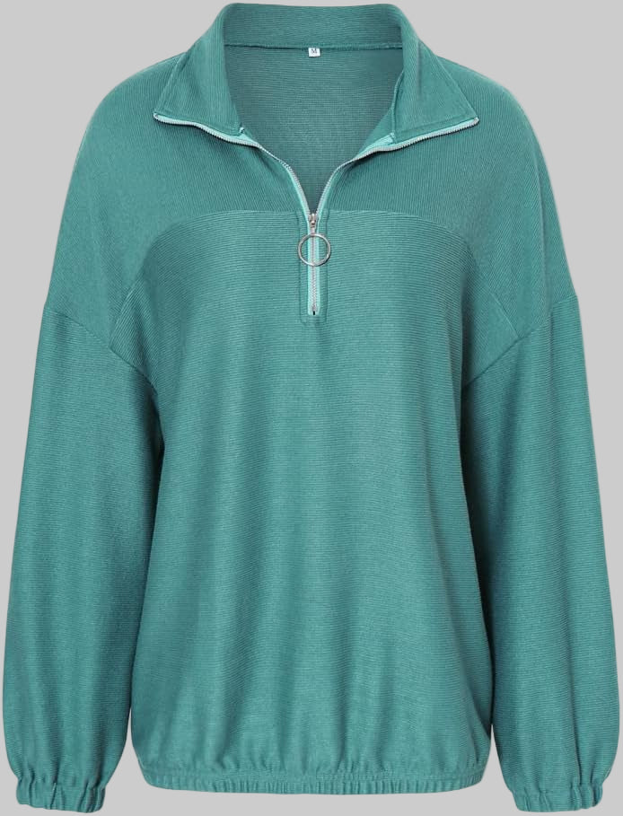 Dames trui met kraag. Voorzien van een halve ritssluiting. De trui heeft elastische manchetten en is gemaakt van spandex.