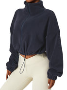 Dit korte dames fleece vest heeft een ritssluiting. Het vest is voorzien van lange mouwen met elastische manchetten. De onderzijde heeft een verstelbaar trekkoord. De hoge kraag zorgt voor extra bedekking rond de hals.