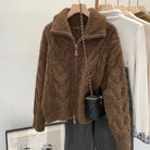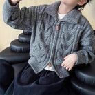 Dames wintervest in los gebreid ontwerp met kabelpatroon. Voorzien van een hoge kraag die open of omhoog gedragen kan worden. Het vest sluit met een tweeweg rits en heeft geribde boorden bij kraag, manchetten en onderkant.