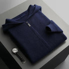 Heren wollen vest met lange mouwen en een volledige ritssluiting. Voorzien van een vastzittende capuchon. Met geribde manchetten en zoom voor een gestructureerde afwerking. Het vest heeft een effen gebreide textuur over het hele oppervlak.