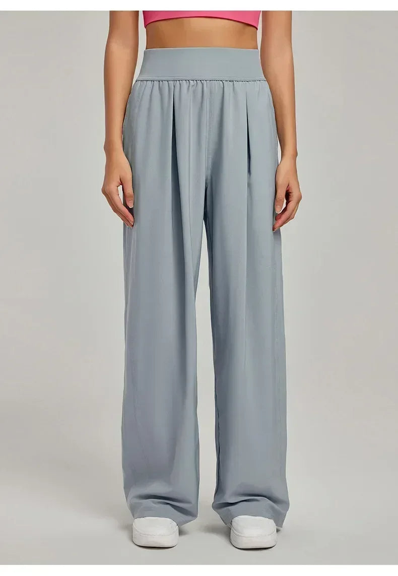 Deze damesbroek heeft een eenvoudige, minimalistische look. De tailleband is elastisch voor eenvoudige aanpassing. Plooien aan beide zijden van de tailleband. De broek heeft zakken aan beide zijkanten en een rechte pijp.