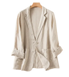 Dames blazer met driekwart mouwen en een reverskraag. Voorzien van een knoopsluiting. De blazer heeft twee voorzakken.