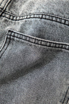 Dames spijkerbroek met wijde pijpen en asymmetrische tailleband