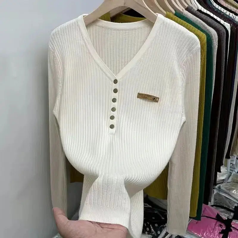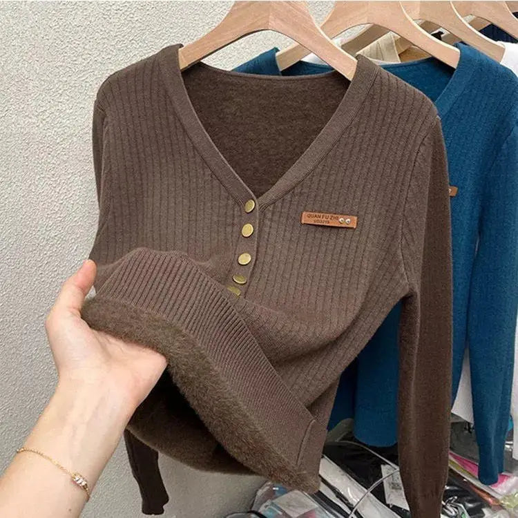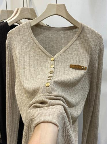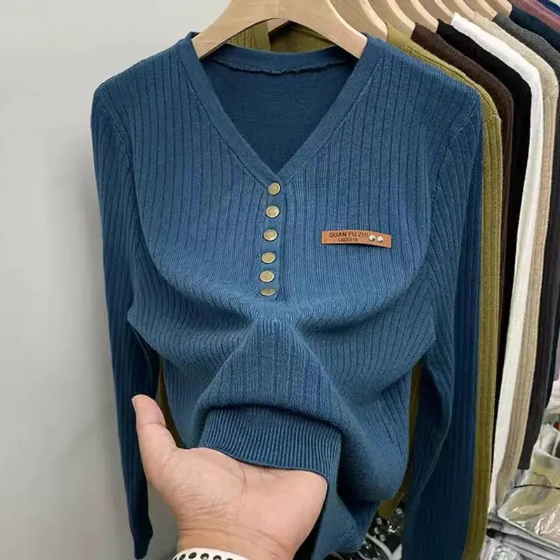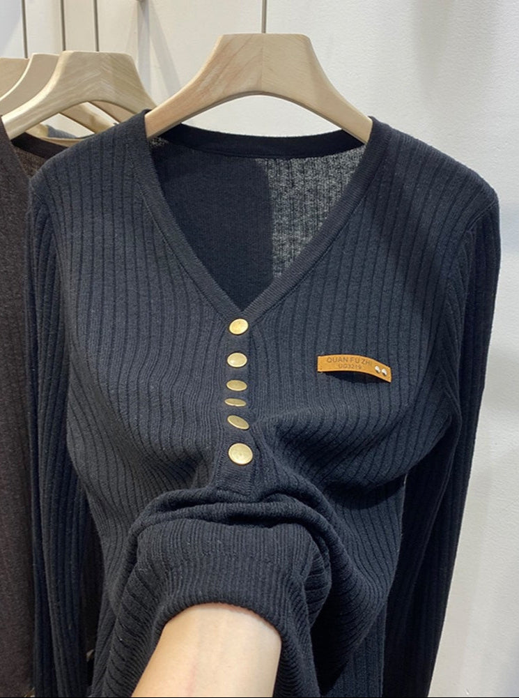 Dames trui met V-hals en knopen