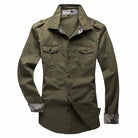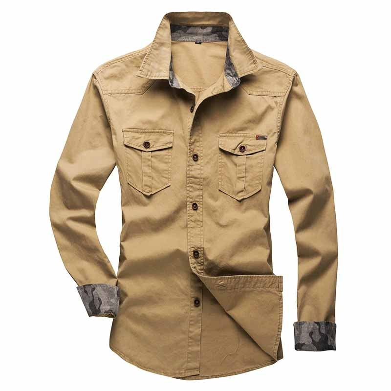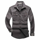 Heren overhemd met lange mouwen en een volledige knoopsluiting. Voorzien van een kraag en twee borstzakken met klep en knoop. De manchetten zijn afgewerkt met knopen.