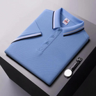 Heren polo met korte mouwen en een gestreepte kraag. Voorzien van een drieknoopsluiting. De mouwboorden zijn afgewerkt met een bijpassende streep.