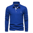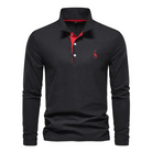 Heren polo van katoen met lange mouwen en een kraag. Voorzien van een knoopsluiting aan de voorzijde met contrasterende binnenzijde.