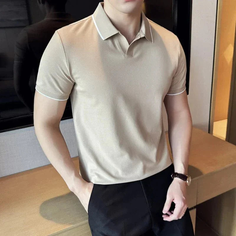 Heren polo met korte mouwen. Gemaakt van katoen met een mix van spandex. De kraag en mouwuiteinden zijn afgewerkt met contrasterende biezen.