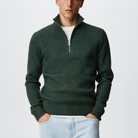 Deze heren trui heeft een halve ritssluiting aan de voorzijde en een opstaande kraag. De trui is voorzien van lange mouwen en een rechte pasvorm.