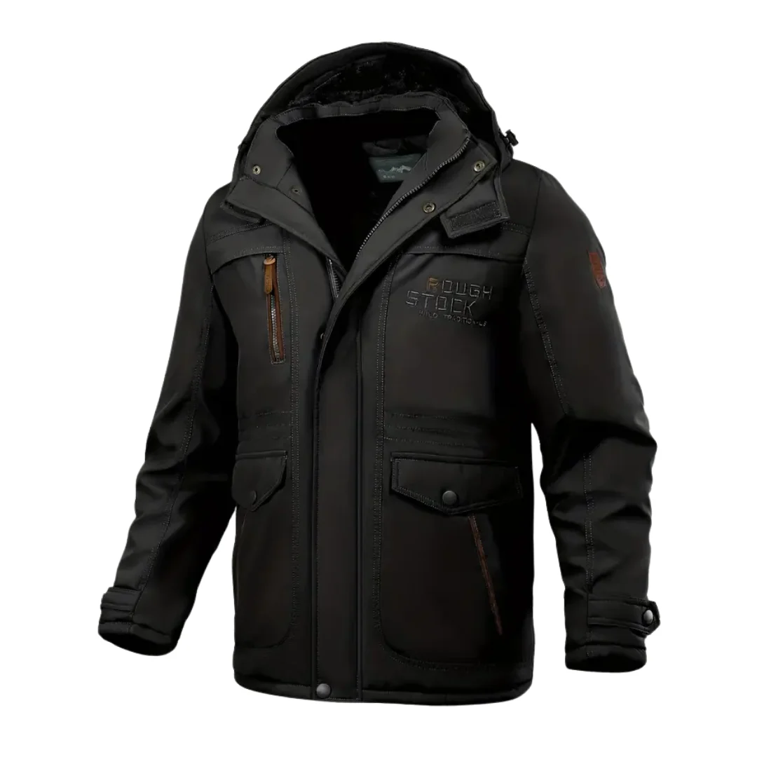 Heren winterjas met lange mouwen en een doorlopende ritssluiting. Voorzien van een capuchon met trekkoord en drukknoopsluiting. De winterjas heeft meerdere zakken, waaronder een borstzak met rits en klepzakken. Afgewerkt met verstelbare manchetten.