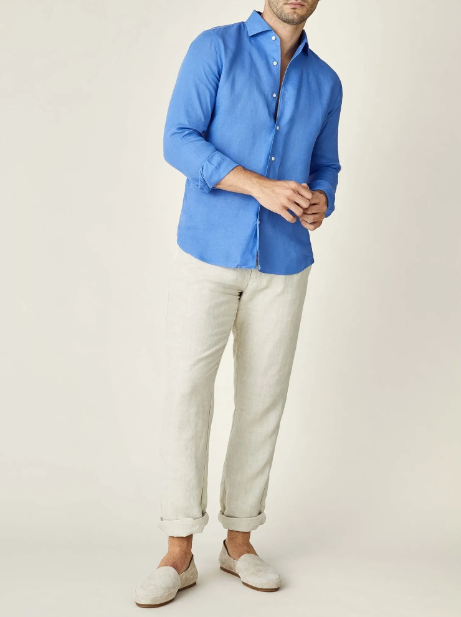 Herenoverhemd met lange mouwen en knoopsluiting aan de voorkant. Voorzien van een puntkraag. De manchetten zijn afgewerkt met knopen en het overhemd heeft een afgeronde zoom.