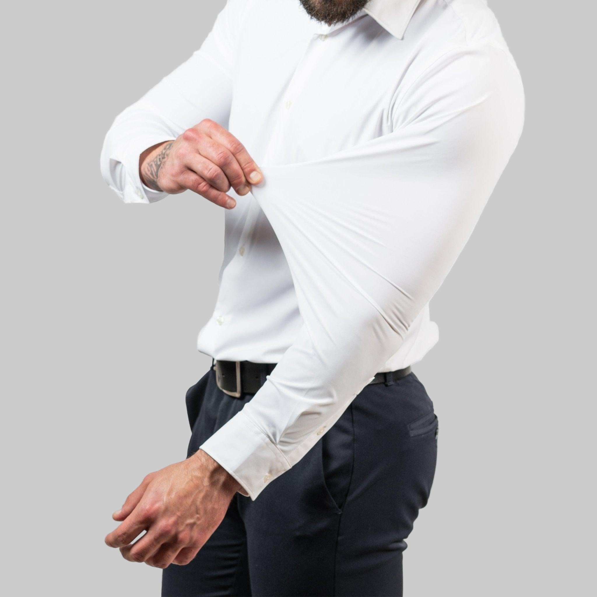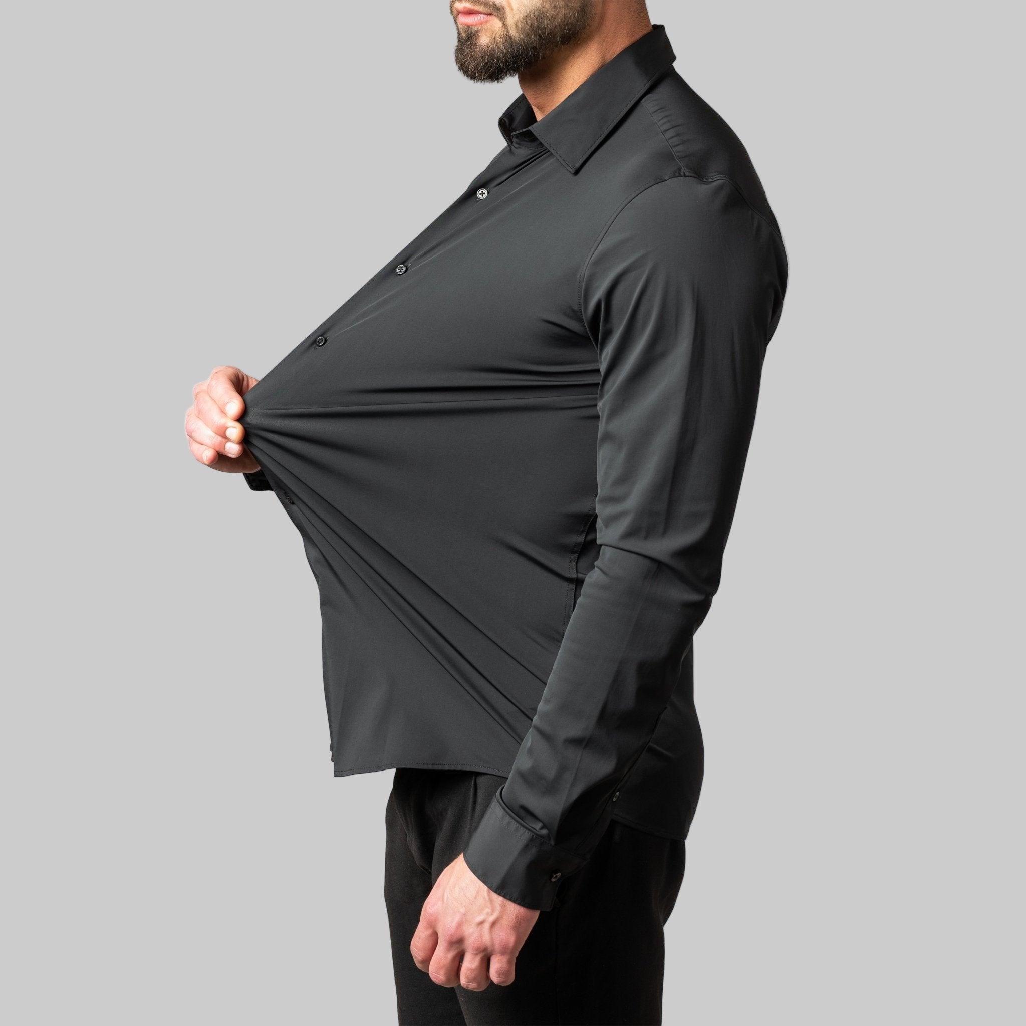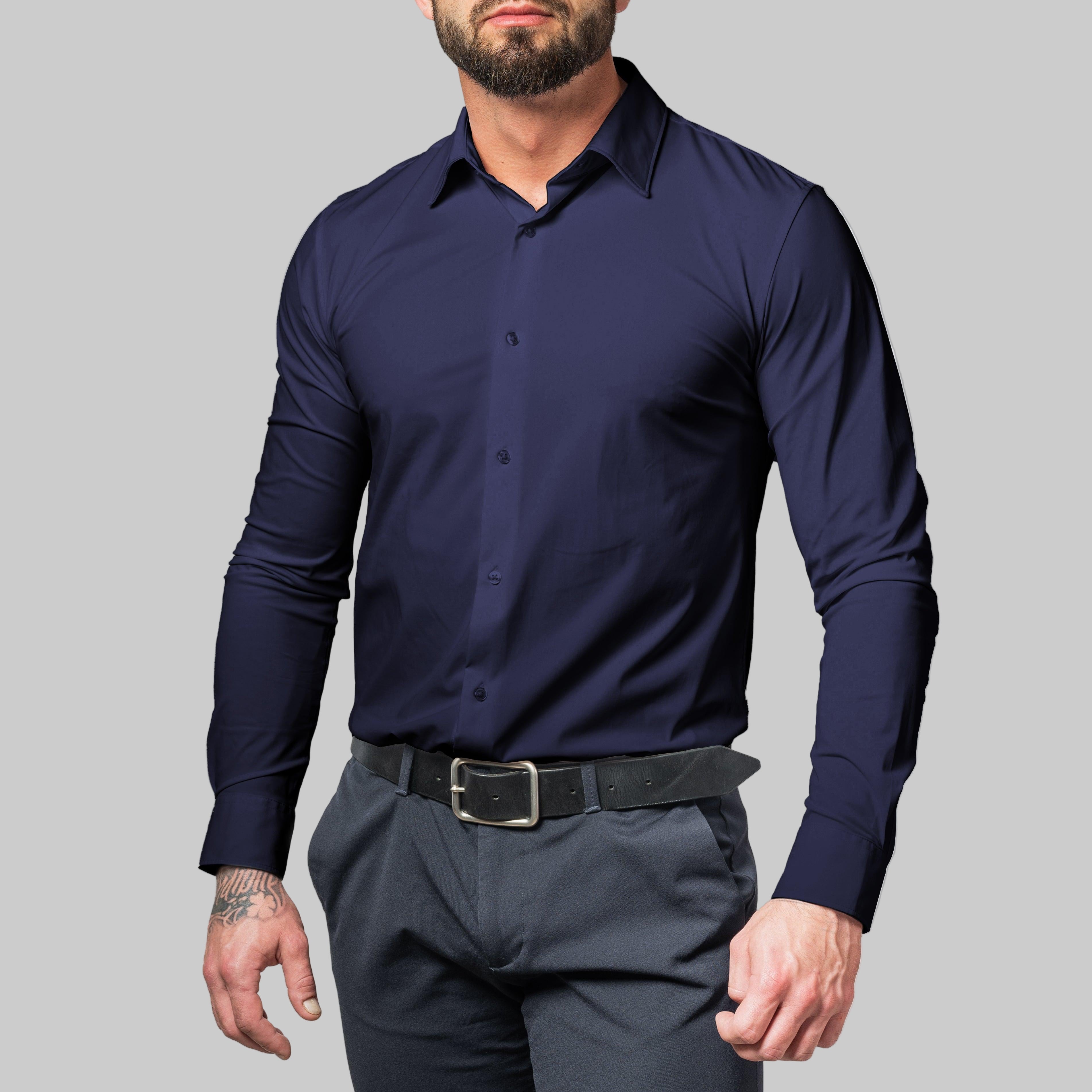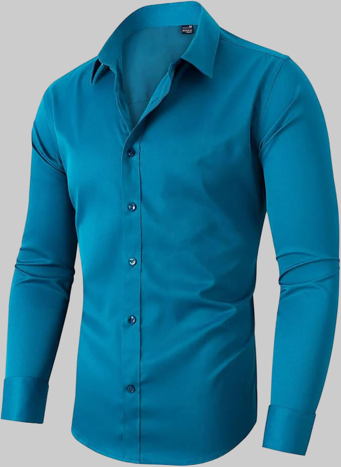 Herenoverhemd met lange mouwen, klassieke kraag en manchetten met knopen. Het overhemd heeft een rechte zoom. De stof is rekbaar.